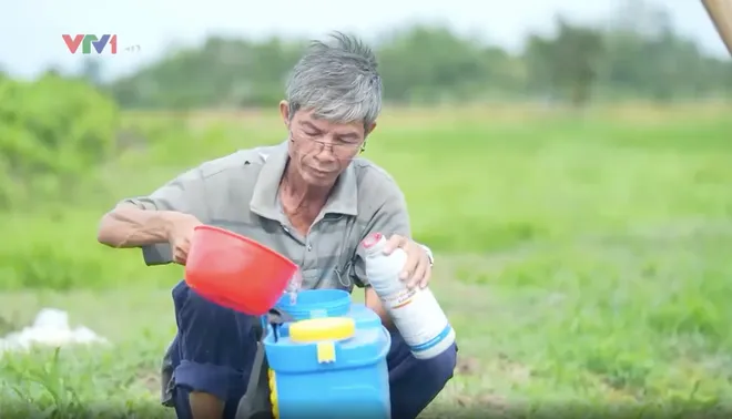 Ông Vãng nói: "Đầu tư ba cái thuốc bảo vệ thực vật này khoảng 800 đến 1 triệu, còn phân rải xuống khoảng 600 ngàn đồng. Chưa nói đến việc mướn người ta xịt. 10 công ruộng thì không thể giàu được, chỉ đủ ăn".