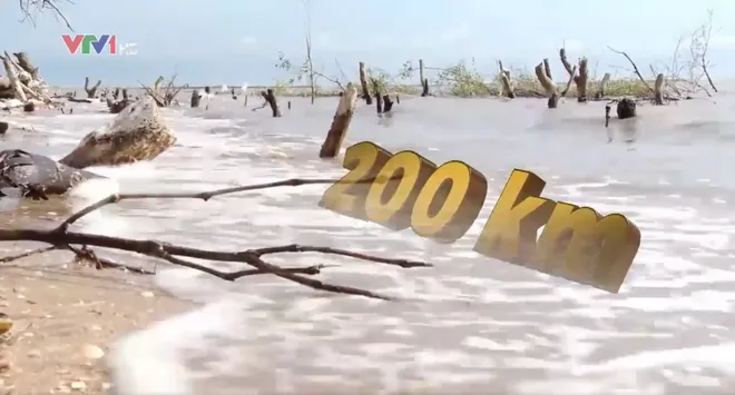 10 năm qua, riêng tại tỉnh Cà Mau, đã có gần 200km bờ biển sạt lở. Tình trạng này khiến địa phương đã mất đi gần 5300 ha đất rừng - tương đương với diện tích của một xã.
