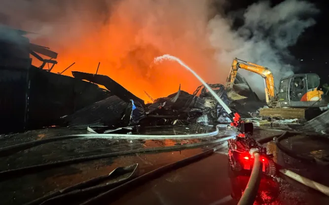 Lực lượng Cảnh sát PCCC và CNCH huy động máy xúc tham gia chữa cháy. Ảnh: CAHN