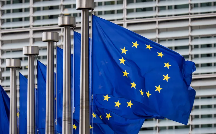 Cờ Liên minh châu Âu tung bay trước trụ sở Ủy ban châu Âu, trước thềm hội nghị thượng đỉnh bất thường của các nhà lãnh đạo EU (Ảnh: DPA/Reuters)