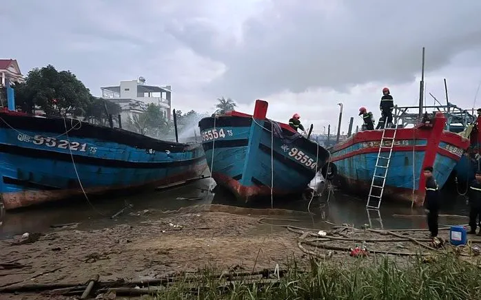Vụ cháy xảy ra vào khoảng 1h ngày 15/1. Theo thông tin ban đầu, có 3 tàu cá ngư dân xã Bình Sơn bị cháy gồm: tàu cá số hiệu QNg 95221TS do ông Lê Hồng Sơn làm chủ, bị cháy khoảng 95%; tàu cá số hiệu QNg 95554TS của ông Nguyễn Khắc Vĩ, cháy khoảng 95%; tàu cá số hiệu QNg 90735TS do bà Nguyễn Thị Hồng Lắm làm chủ, cháy khoảng 20%. Ngoài ra, tàu cá số hiệu QNg 95138TS của bà Bùi Thị Tường Vy (trú xã Vạn Tường) bị cháy trên 70%.