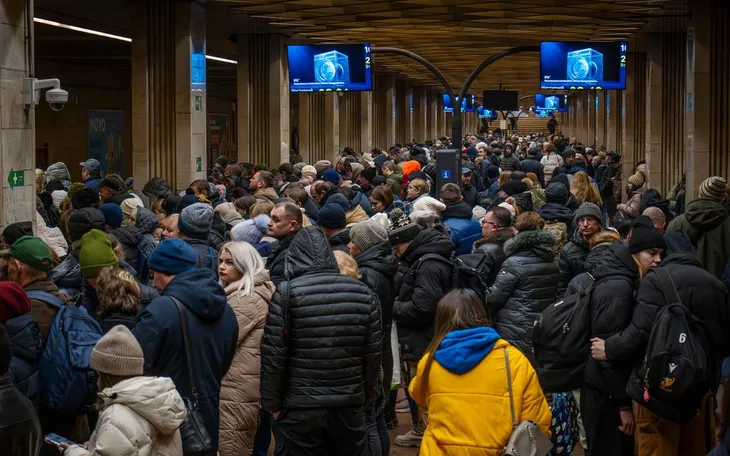 Người dân Kiev trú ẩn trong ga tàu điện ngầm trong khi thủ đô hứng không kích của Nga vào đêm 22/12/2025 (Ảnh: AP)