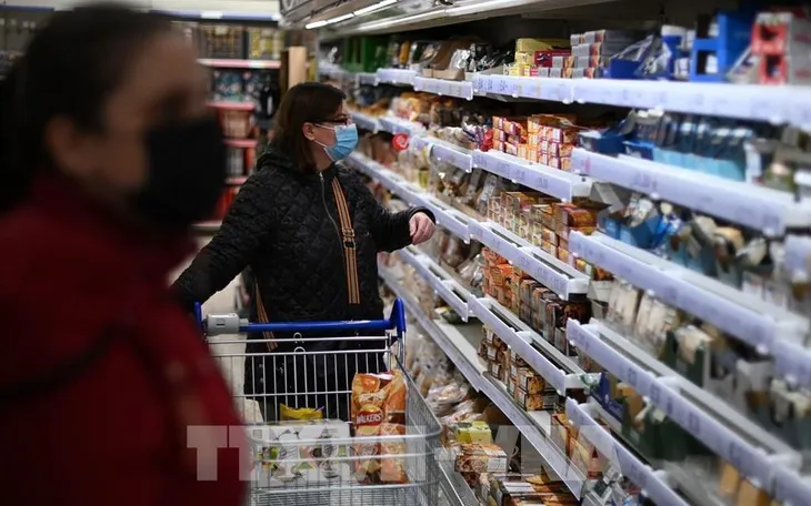 Khách chọn mua hàng tại một siêu thị ở London, Anh. Ảnh: AFP/TTXVN