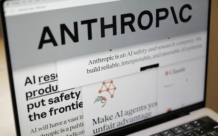Các trang web của Anthropic và logo công ty hiển thị trên màn hình máy tính tại New York, ngày 26/2/2026. (Ảnh: AP/Patrick Sison)