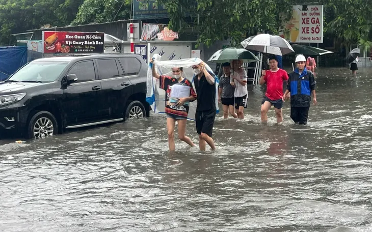 Mưa lớn diện rộng khiến nhiều tuyến phố trên địa bàn Hà Nội ngập sâu vào sáng 26/8.