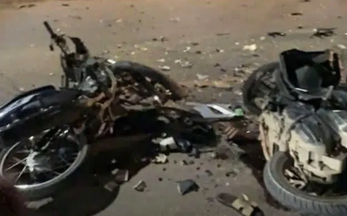 Qua camera của nhà dân cho thấy: Sau cú đâm trực diện với tốc độ cao cả ba người trên hai xe máy đều nằm im bất động, hai xe máy hư hỏng nặng.