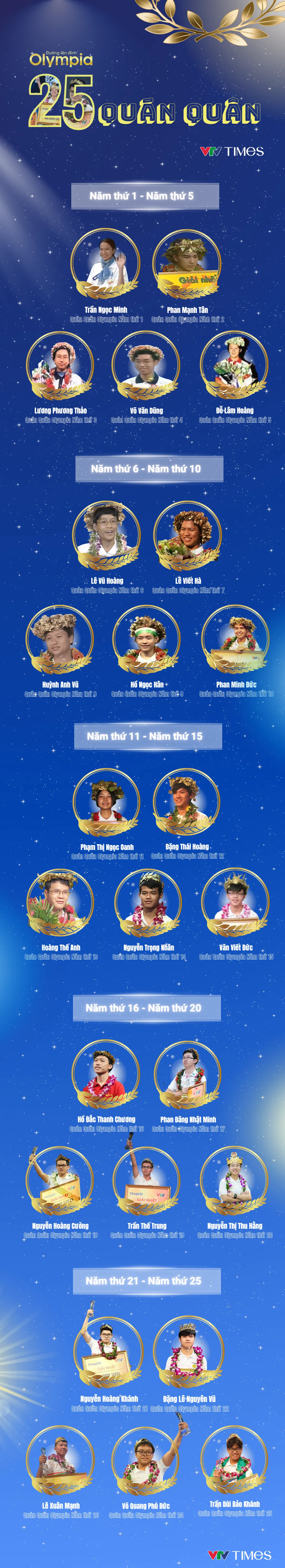 VTV.vn - Bảo Khánh trở thành Quán quâncủa Đường lên đỉnh Olympia năm thứ 25, nối dài hành trình 25 năm của sân chơi tri thức, nơi rèn luyện ý chí, hun đúc ước mơ.