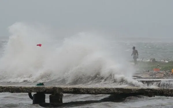 Sóng lớn dội tại bờ biển Kingston, Jamaica, khi bão Melissa tiến gần, ngày 28/10/2025 (Ảnh: AP)