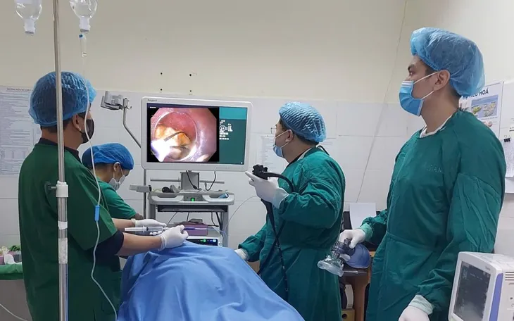 Theo người nhà, bệnh nhân đột ngột nuốt nghẹn, đau rát cổ họng, tức ngực và khó thở. Ngay sau khi nhập viện, các bác sĩ chỉ định nội soi thực quản bằng ống mềm.
