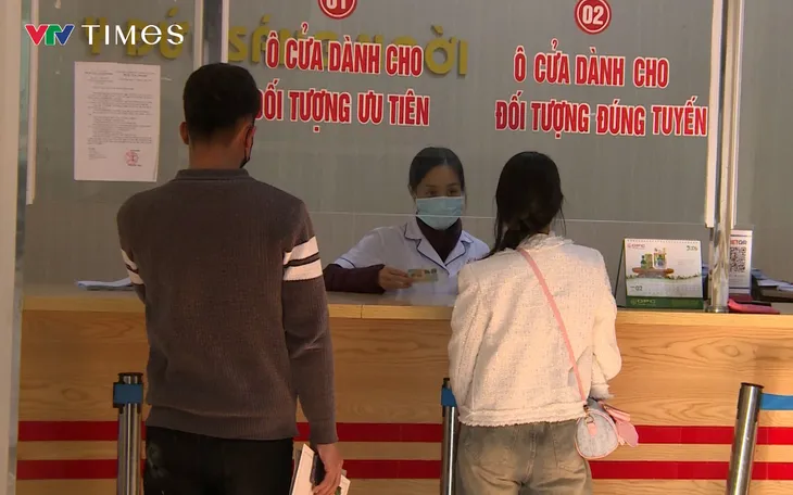 Nhân viên y tế hướng dẫn người dân thực hiện thủ tục đăng ký khám bệnh bằng thiết bị điện tử, góp phần rút ngắn thời gian chờ đợi.