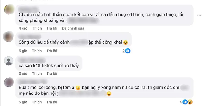 Những hành động này đều nhận về tiếng hò reo cổ vũ từ nhiều người xung quanh. Đặc biệt, các nam nữ thanh niên trong công ty hầu như đều ở độ tuổi khá trẻ. Sự việc nhanh chóng lan truyền với tốc độ chóng mặt, kéo theo hàng loạt bình luận gay gắt từ phía cộng đồng mạng về tính chất phản cảm, không phù hợp với môi trường làm việc.