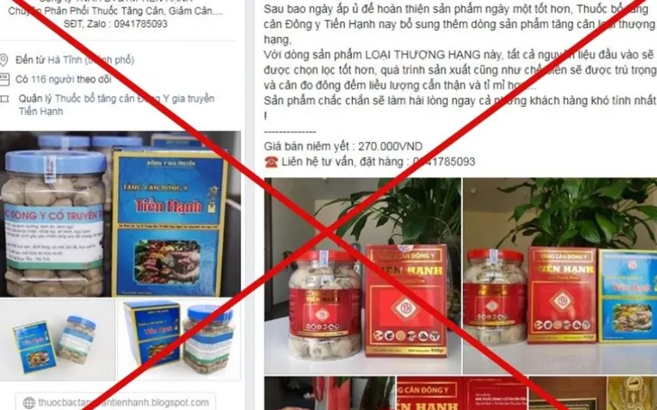 Các sản phẩm được rao bán trên mạng với tên Thuốc tăng cân đông y Tiến Hạnh.