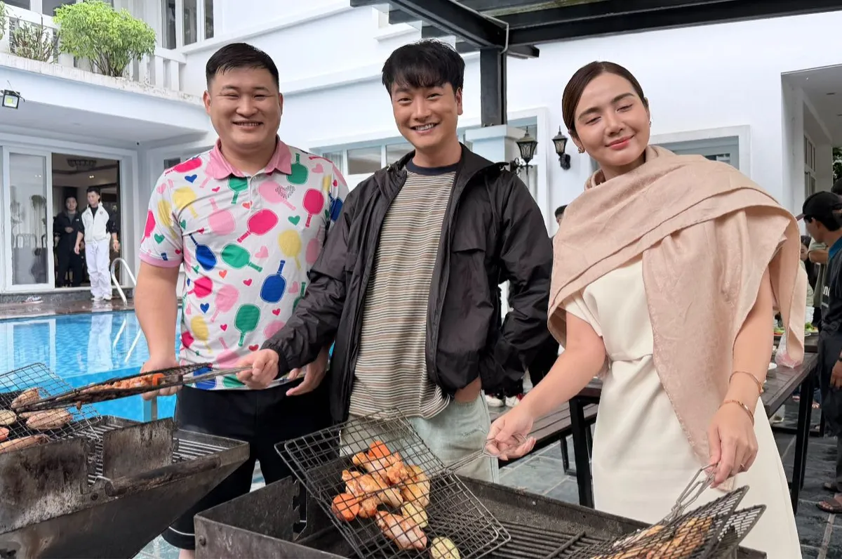 Các diễn viên trong hậu trường làm phim Cách em 1 milimet.