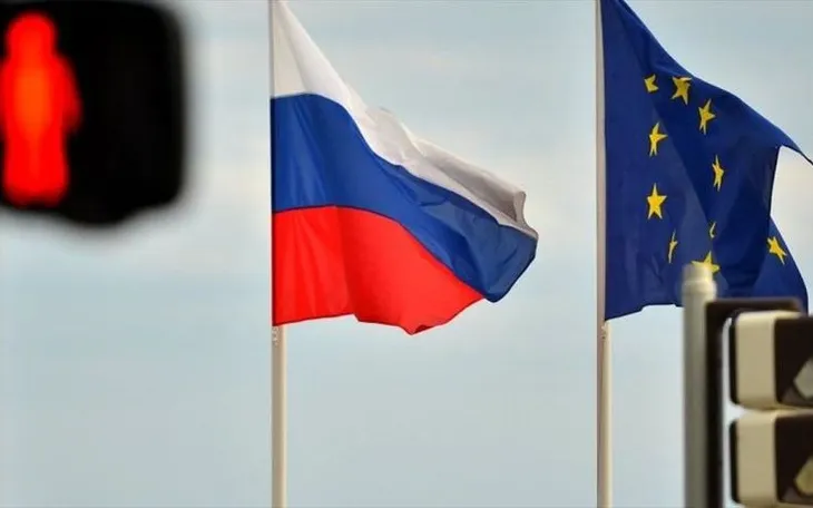 Cờ Nga và cờ EU. (Ảnh: AA)