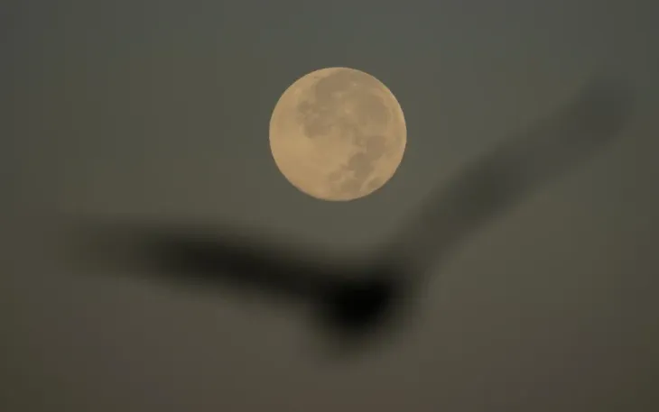 Một con chim bay qua siêu trăng mùa gặt ở San Francisco, ngày 7/10/2025 (Ảnh: AP)