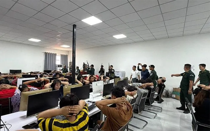 Lực lượng chức năng Campuchia vừa tiến hành một chiến dịch truy quét quy mô lớn nhằm vào các hoạt động lừa đảo trực tuyến tại thành phố biên giới Poipet, bắt giữ 400 nghi phạm (Ảnh: Khmer Times)
