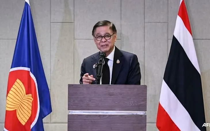 Ngoại trưởng Thái Lan Sihasak Phuangketkeow họp báo sau cuộc họp đặc biệt của ASEAN về xung đột biên giới Thái Lan - Campuchia tại Kuala Lumpur ngày 22/12/2025 (Ảnh: AFP)