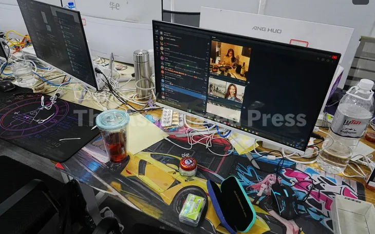 Các thiết bị bị tịch thu trong cuộc đột kích của cảnh sát Campuchia tại một trung tâm lừa đảo ở Phnom Penh, Campuchia, ngày 11/3/2026 (Ảnh: AP)