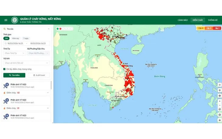 Theo dõi thông tin cảnh báo cháy rừng trên hệ thống thông tin cảnh báo cháy sớm của Cục Lâm nghiệp và Kiểm lâm tại địa chỉ Website https://vnforest.gov.vn. (Nguồn: Cục Lâm nghiệp và Kiểm lâm)
