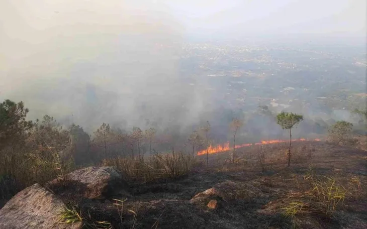 Vụ cháy rừng thông xảy ra trên núi Đại Bình vào chiều 2/4.