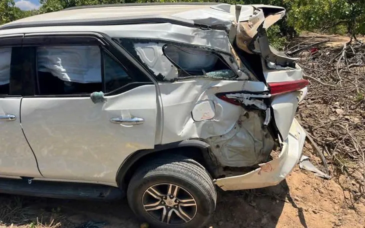 Xe ô tô 7 chỗ chở 4 người hư hỏng nặng phần đuôi.