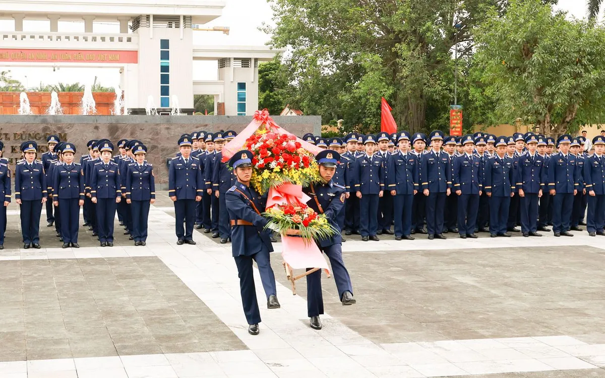 Trước Tượng đài Chủ tịch Hồ Chí Minh trong khuôn viên trụ sở cơ quan Bộ Tư lệnh Cảnh sát biển, Đoàn đại biểu đã thành kính dâng lẵng hoa tươi thắm, báo công dâng Bác và bày tỏ lòng biết ơn sâu sắc đối với công lao to lớn của Người - vị lãnh tụ thiên tài của Đảng và cách mạng Việt Nam, người cha thân yêu của các lực lượng vũ trang nhân dân, Người đã trọn đời phấn đấu hi sinh vì độc lập, tự do cho Tổ quốc và hạnh phúc của nhân dân.