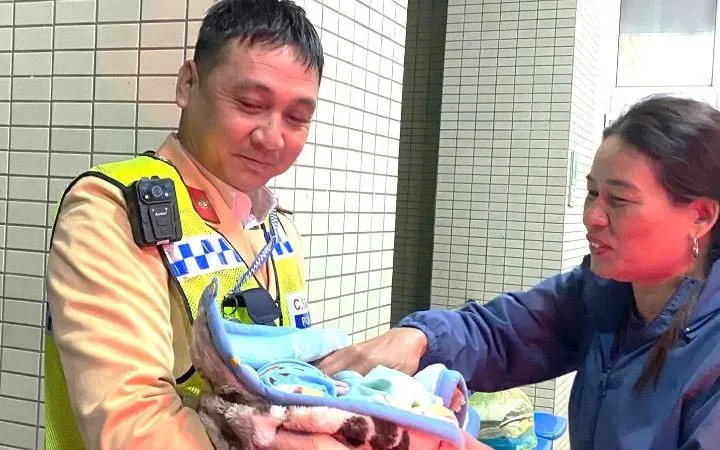Cảnh sát giao thông đã kịp thời đưa sản phụ và cháu bé vào Bệnh viện Hữu nghị Việt Nam - Cuba Đồng Hới để các bác sĩ tiếp tục chăm sóc y tế.