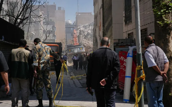 Hiện trường vụ tấn công phá hủy một phần giáo đường Khorasaniha và các khu dân cư ở Tehran, Iran, ngày 7/4/2026. (Ảnh: AP)