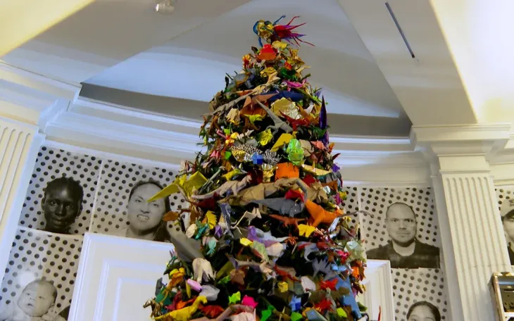 Ở đây, câu chuyện về sự tuyệt chủng của loài khủng long và sự hồi sinh của sự sống trên Trái đất được tái hiện theo cách chưa từng có. Không sử dụng những quả cầu lấp lánh hay dây kim tuyến quen thuộc, cây thông đặc biệt này được trang trí hoàn toàn bằng nghệ thuật gấp giấy Origami, mang đến thông điệp về sự khởi đầu mới của sự sống sau một trong những thảm họa lớn nhất hành tinh.