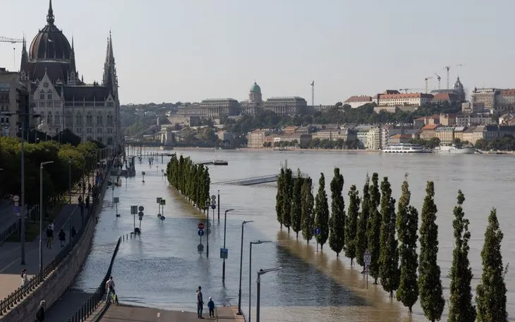 Mực nước sông Danube đoạn qua thủ đô Budapest, Hungary dâng cao sau bão Boris ngày 19/9/2024 (Ảnh: THX/TTXVN)