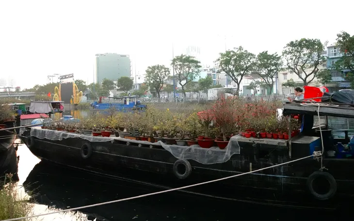 Dọc tuyến kênh Tàu Hủ - Bến Nghé, những ghe thuyền chở đầy hoa kiểng từ các tỉnh miền Tây lần lượt cập bến, mang theo sắc xuân phương Nam hòa vào nhịp sống tất bật của thành phố những ngày cuối năm.