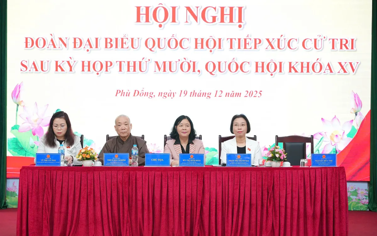 Sáng 19/12, tại Hội trường HĐND, UBND xã Phù Đổng (Hà Nội), Ủy viên Bộ Chính trị, Bí thư Trung ương Đảng, Chủ tịch Ủy ban Trung ương Mặt trận Tổ quốc (MTTQ) Việt Nam Bùi Thị Minh Hoài và Đoàn đại biểu Quốc hội thành phố Hà Nội tiếp xúc cử tri sau Kỳ họp thứ 10, Quốc hội khoá XV.