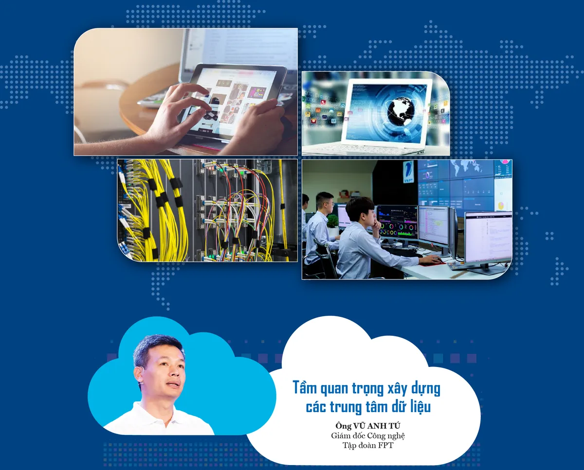 Hiện nay, các doanh nghiệp công nghệ Việt Nam như FPT, Viettel, VNPT… đã chú trọng đầu tư, xây dựng phát triển trung tâm dữ liệu hiện đại, quy mô lớn, đáp ứng tiêu chuẩn quốc tế và cung cấp các dịch vụ đẳng cấp thế giới. Nhiều năm qua, FPT đã đầu tư hàng nghìn tỷ đồng để xây dựng các trung tâm dữ liệu lớn ở Hà Nội và TP.HCM. Chúng tôi có 4 trung tâm dữ liệu trên cả nước, trong đó, đã đưa vào hoạt động 3 trung tâm rộng hàng nghìn m2, đáp ứng tiêu chuẩn quốc tế nghiêm ngặt.
