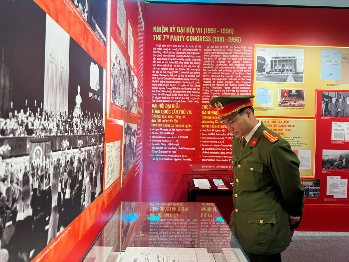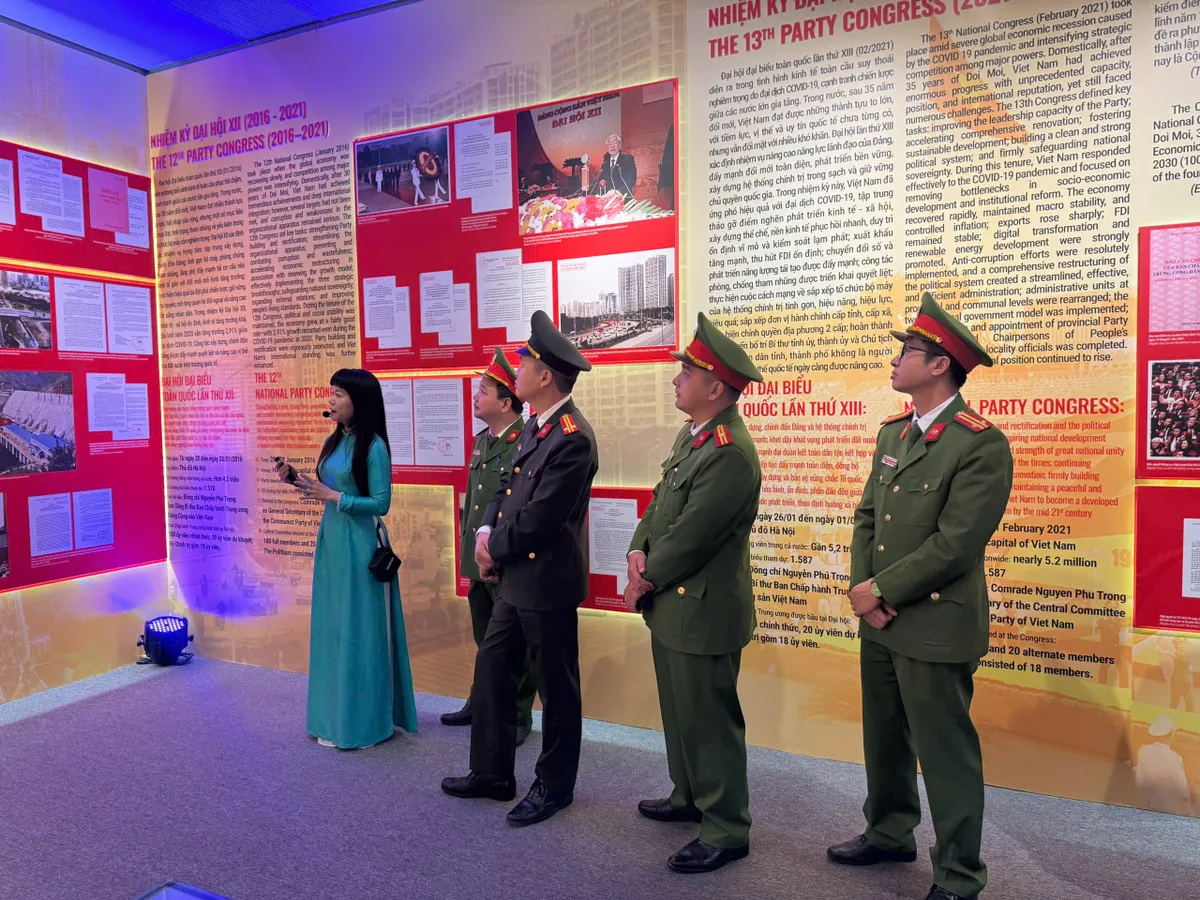 Tại đây, các cán bộ, chiến sĩ đã trực tiếp tìm hiểu hệ thống tài liệu, hình ảnh và hiện vật quý giá, tái hiện chặng đường cách mạng vẻ vang của Đảng qua các kỳ Đại hội. Những quyết sách chiến lược và thành tựu to lớn của đất nước dưới sự lãnh đạo của Đảng đã khơi gợi niềm tự hào và ý thức trách nhiệm trong mỗi chiến sĩ.