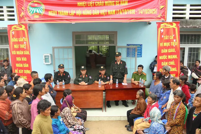 Ngay trong đêm trước ngày trao quà, cán bộ chiến sĩ đã tập trung phân loại và soạn từng phần quà. Những bao gạo, thùng mì và nước suối được chuyển lên xe trong ánh đèn khuya, thể hiện nỗ lực đưa hỗ trợ đến người dân vùng lũ nhanh nhất. Đoàn đã trao 150 phần quà gồm bánh, sữa và các nhu yếu phẩm; kèm theo 600kg gạo, 200 thùng mì và 100 thùng nước suối cho người dân Raglai và T’rin bị thiệt hại nặng. Những nụ cười của bà con khi nhận quà là động lực lớn với lực lượng làm nhiệm vụ, lan tỏa hình ảnh đẹp của người chiến sĩ Công an nhân dân.