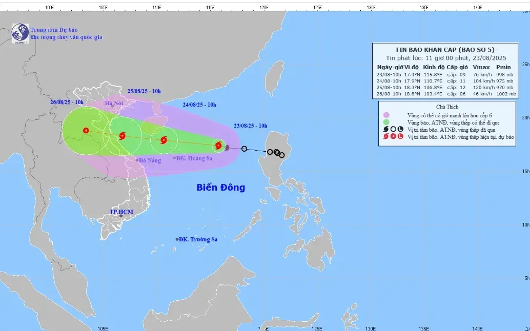 Ngày 25/8, đại diện Cục CSGT (Bộ Công an) cho biết, do ảnh hưởng cơn bão số 5, tâm bão sẽ vào địa bàn tỉnh Nghệ An vào chiều nay.