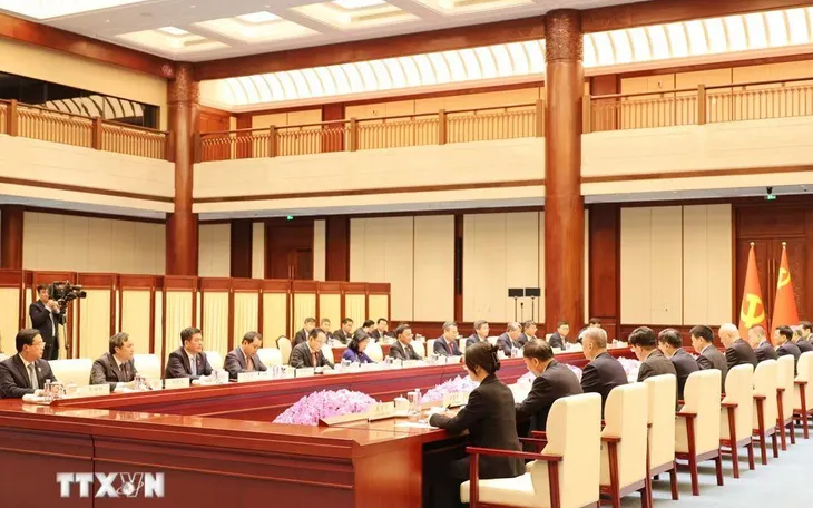 Chiều 15/4, trong khuôn khổ chuyến thăm cấp Nhà nước của Tổng Bí thư, Chủ tịch nước Tô Lâm đến Trung Quốc, đồng chí Trần Cẩm Tú, Ủy viên Bộ Chính trị, Thường trực Ban Bí thư đã hội đàm với đồng chí Thái Kỳ, Ủy viên Thường vụ Bộ Chính trị, Bí thư Ban Bí thư, Chánh Văn phòng Trung ương Đảng Cộng sản Trung Quốc.