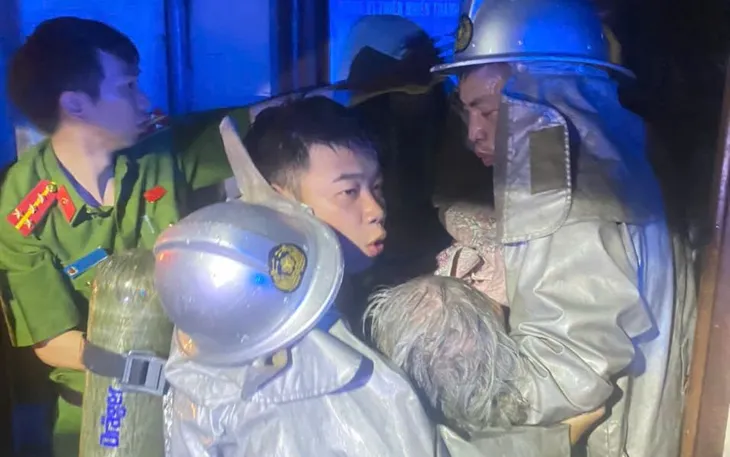 Tại hiện trường, đám cháy bùng phát từ tầng 1 (trong căn nhà 4 tầng 1 tum), tỏa nhiều khói, khí độc, có nguy cơ lan lên các tầng trên. Xác định bên trong có người mắc kẹt, lực lượng chức năng nhanh chóng triển khai đội hình tìm kiếm, sử dụng bình thở và thiết bị chuyên dụng tiếp cận các tầng nhà, đưa 2 người ra ngoài an toàn.