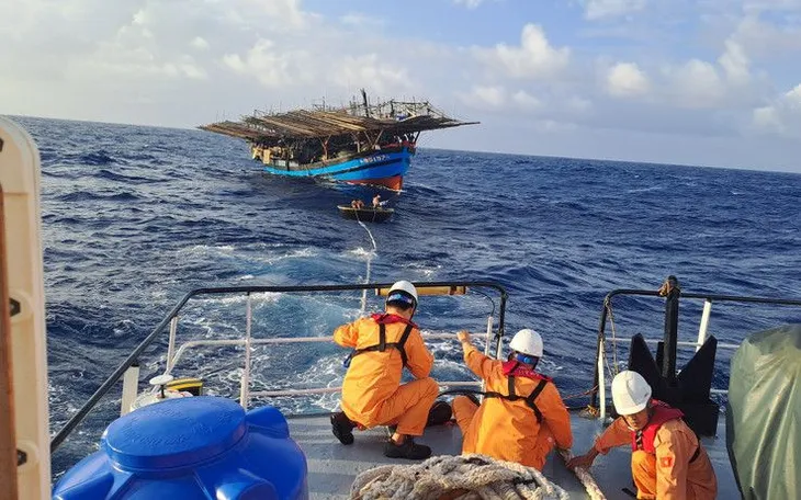 Lực lượng cứu nạn tiếp cận tàu cá bị nạn.
