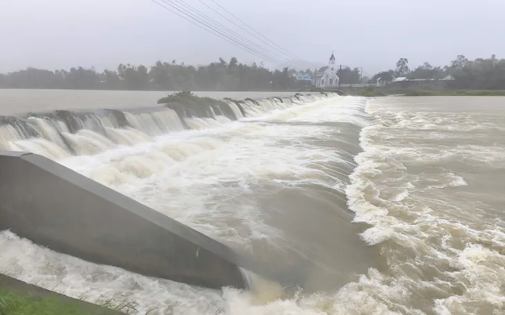 Nước lớn tại các đập tràn tại Tuy An Bắc, Đắk Lắk.