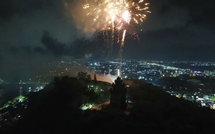 Tại khu vực Núi Nhạn, người dân tập trung tại các điểm cao để ngắm nhìn thành phố trong khoảnh khắc giao thừa. Từ trên cao, ánh đèn đô thị hòa cùng sắc pháo hoa phía chân trời tạo nên khung cảnh vừa bình yên, vừa tràn đầy sức sống.
