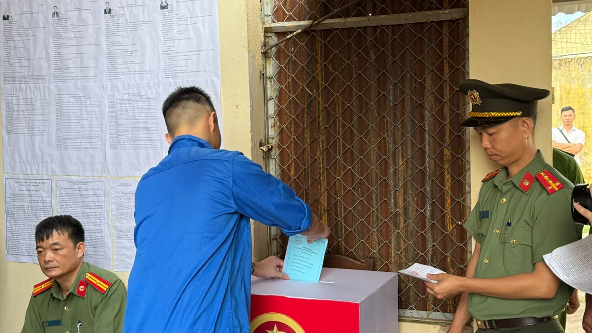 Các phạm nhân bỏ phiếu tại trại tạm giam số 1 - Công an tỉnh Đắk Lắk.