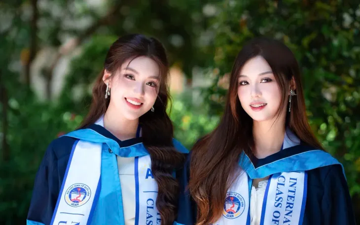 Ngoài chị gái song sinh, Phan Phương Oanh còn một em trai. Đây là bức ảnh gia đình chụp tháng 5/2025 khi cặp chị em sinh đôi tốt nghiệp Đại học.