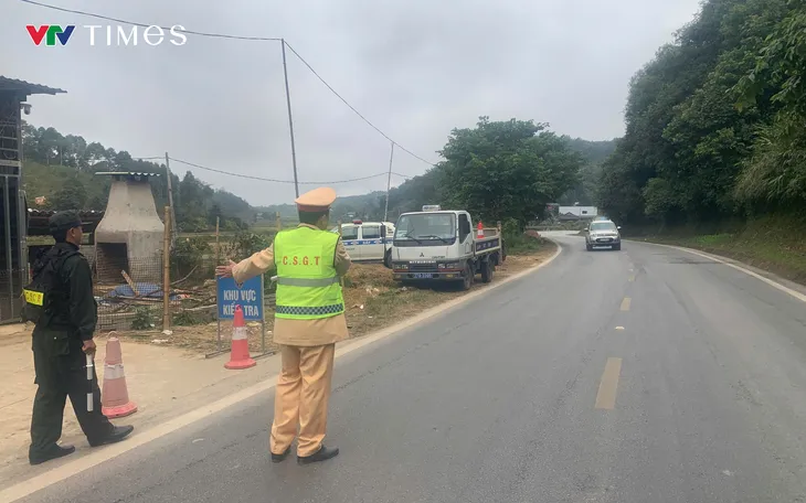 Đội CSGT Công an tỉnh Điện Biên lập biên bản, xử lý các trường hợp vi phạm trật tự, an toàn giao thông. Ảnh: Quốc Hưng