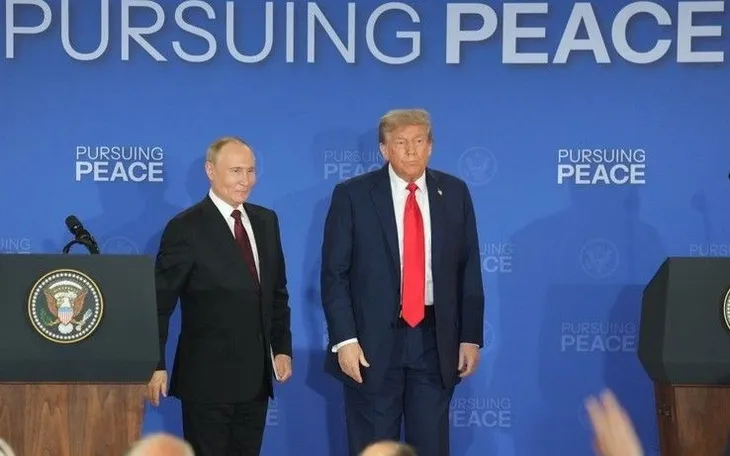Tổng thống Mỹ (phải) và Tổng thống Nga trong cuộc họp báo chung tại Căn cứ Elmendorf-Richardson ở Anchorage, bang Alaska, Mỹ, ngày 15/8/2025 (Ảnh: THX/TTXVN)
