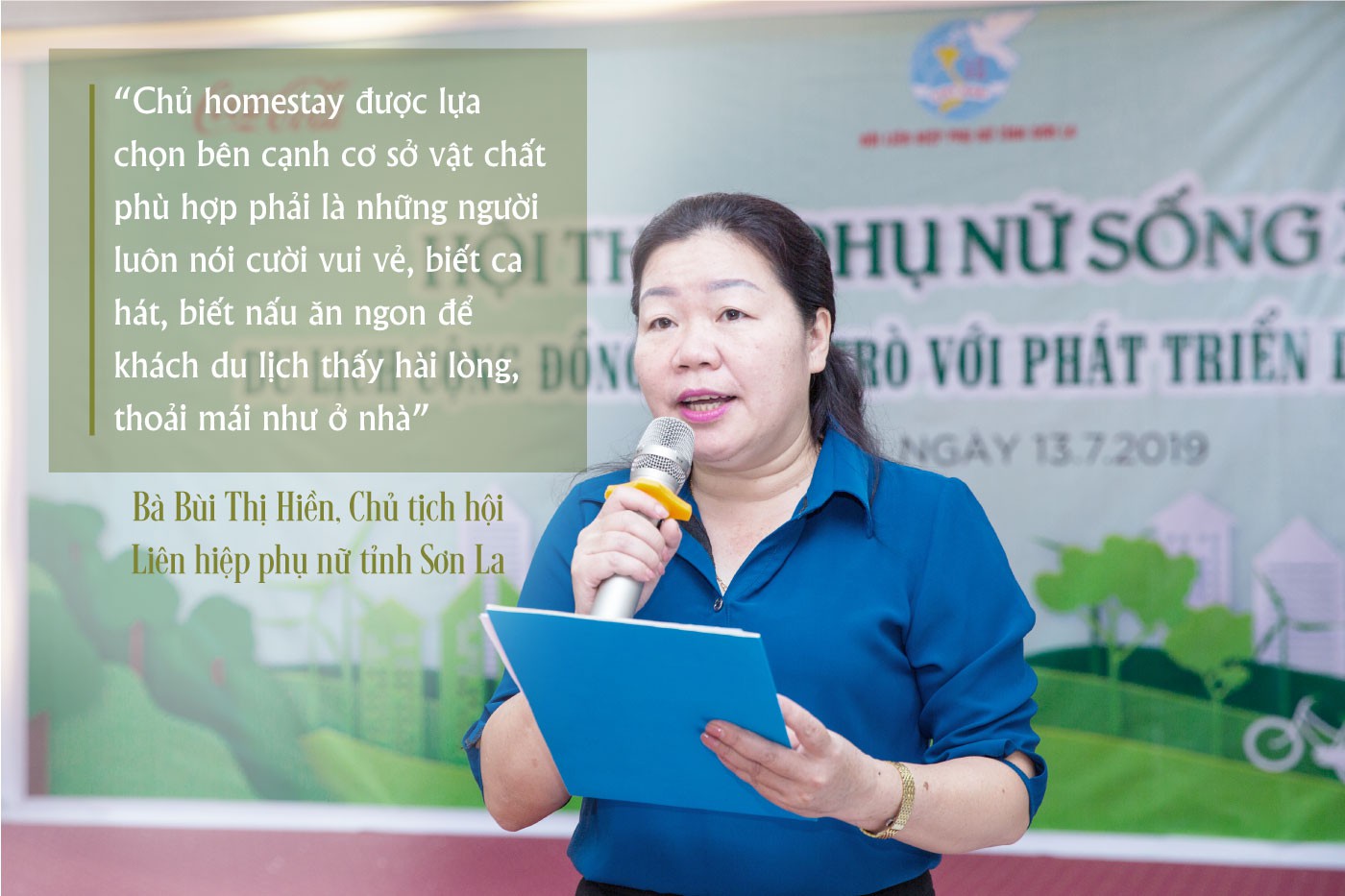 Tại sự kiện, bà Bùi Thị Hiền, Chủ tịch hội Liên hiệp phụ nữ tỉnh Sơn La cho biết, với cơ cấu dân số 49,6% là nữ, phụ nữ tỉnh Sơn La đang có đóng góp quan trọng trong phát triển kinh tế xã hội nói riêng và du lịch nói chung. Lần đầu tiên có cơ hội tham gia một sự kiện được tổ chức quy mô và bài bản, những phụ nữ đang làm du lịch tại Sơn La đã học hỏi được rất nhiều, trong đó quan trọng nhất là tư duy làm du lịch xanh và phát triển bền vững.