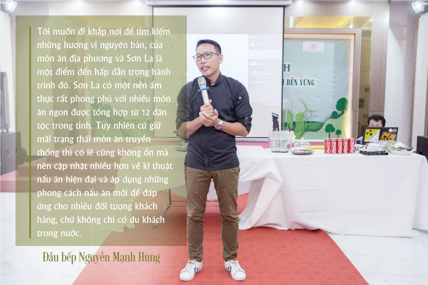 Đặc biệt, hội thảo đã tổ chức "Chuyên đề ẩm thực phù hợp dành cho du khách" và nhận được sự hưởng ứng nhiệt tình của những người tham gia. Chương trình giao lưu ẩm thực có sự góp mặt của đầu bếp Nguyễn Mạnh Hùng, một gương mặt quen thuộc trên kênh truyền hình VTV3 và VTV7 kids đã truyền cảm hứng và mang lại không chỉ kiến thức ẩm thực cơ bản mà còn gửi đến một thông điệp về du lịch xanh cho những người tham gia.