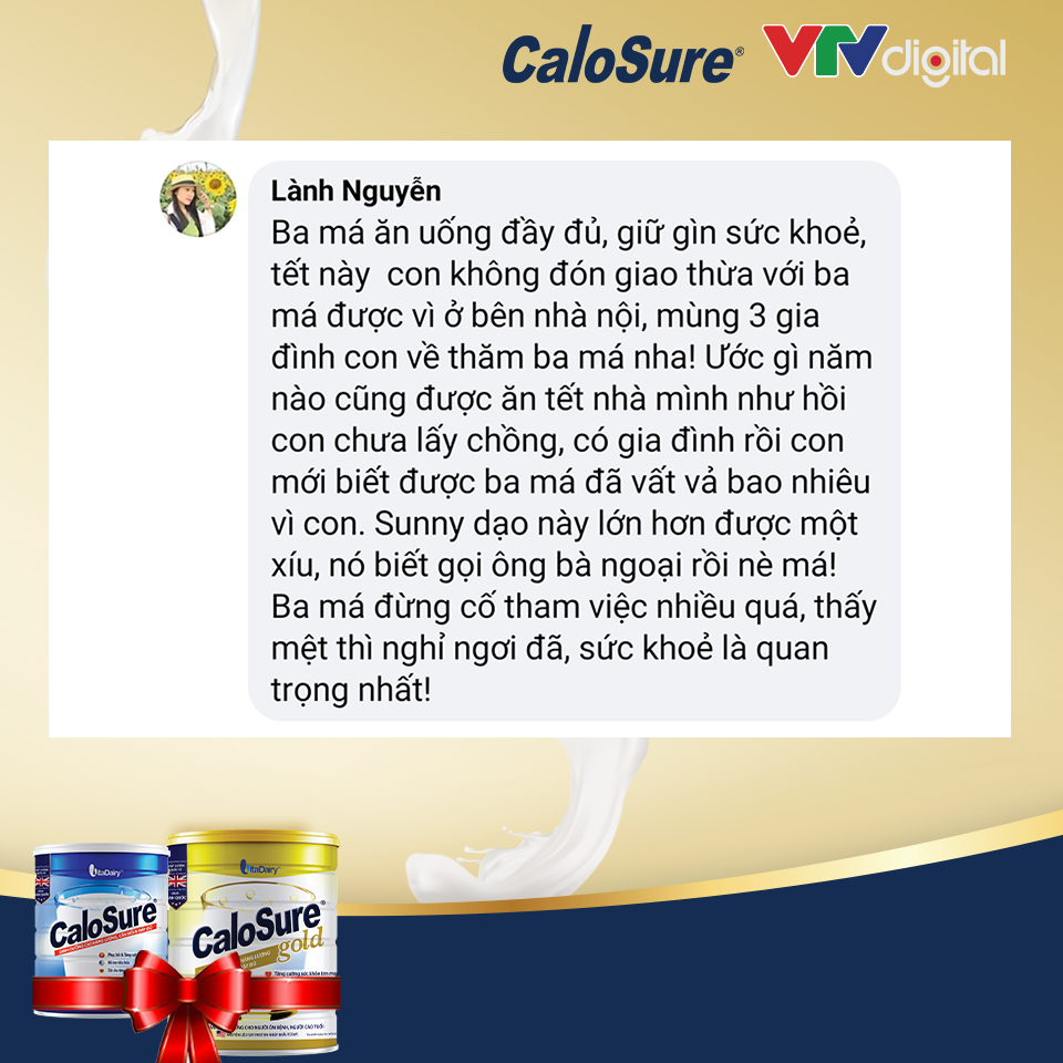 Nhãn hàng Calosure sẽ thay bạn gửi món quà sức khỏe đầu năm đến với cha mẹ và người thân yêu của mình.