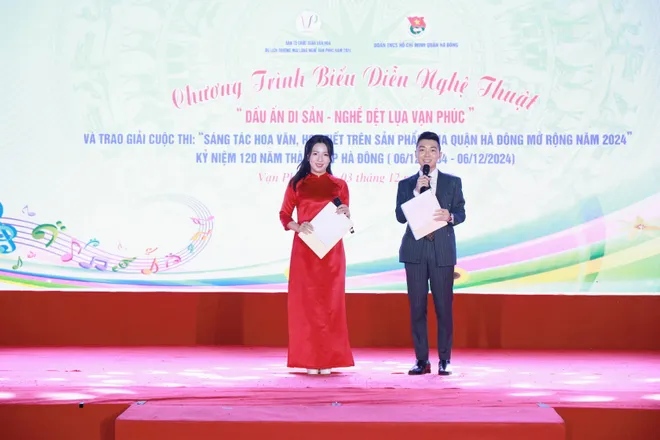 Tối 3/12, chương trình biểu diễn nghệ thuật "Dấu ấn di sản - Nghề dệt lụa Vạn Phúc" và trao giải cuộc thi "Sáng tác hoa văn, hoạt thiết trên sản phẩm lụa quận Hà Đông mở rộng năm 2024" đã diễn ra tại phường Vạn Phúc, quận Hà Đông. Chương trình nằm trong chuỗi các hoạt động của Tuần lễ Văn hóa - Du lịch - Thương mại làng nghề Vạn Phúc năm 2024.