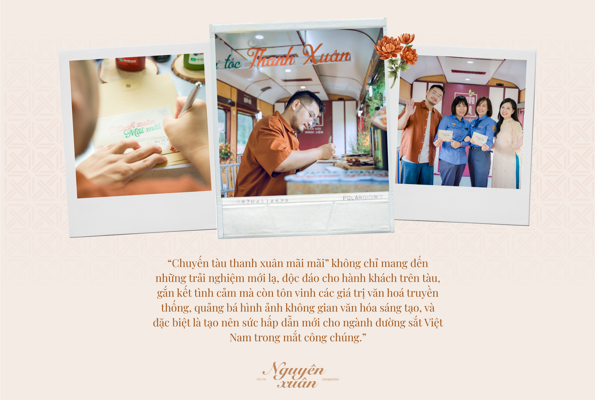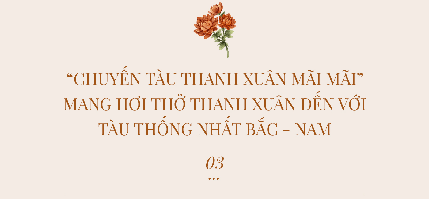 Lần đầu tiên trên chuyến đi dài 36 tiếng từ Bắc vào Nam, các hành khách được đắm mình trong không gian gợi nhớ về thanh xuân với nhiều hoạt động, trải nghiệm thú vị như: Đêm nhạc thanh xuân (Trạm Thanh xuân gắn kết); Tiệm tóc thanh xuân (Trạm Thanh xuân mãi mãi) và viết thư tay gửi thanh xuân.